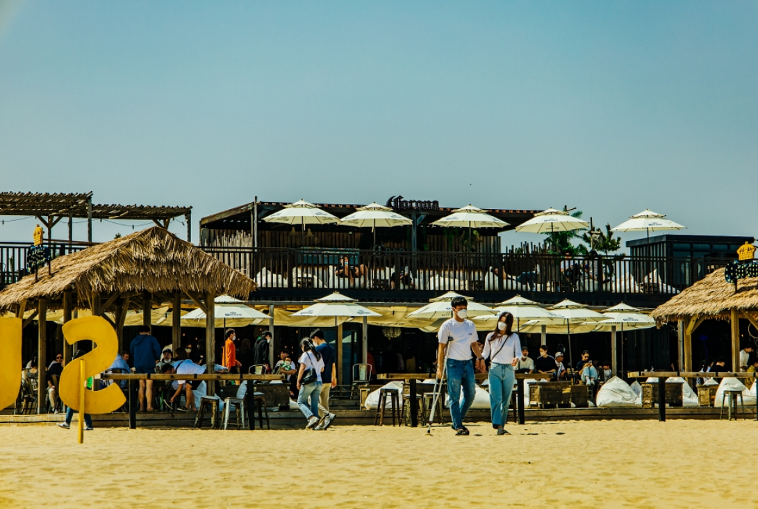 입구로 들어오면 마치 발리 같은 외국 휴양지에서 볼 수 있는 그런 느낌의 휴식 공간이 보였습니다. "국내여행지 중에서 외국 느낌 나는 여행지 추천해주세요"라고 누가 묻는다면 이제 서피비치가 가장 먼저 생각이 날 것 같습니다.