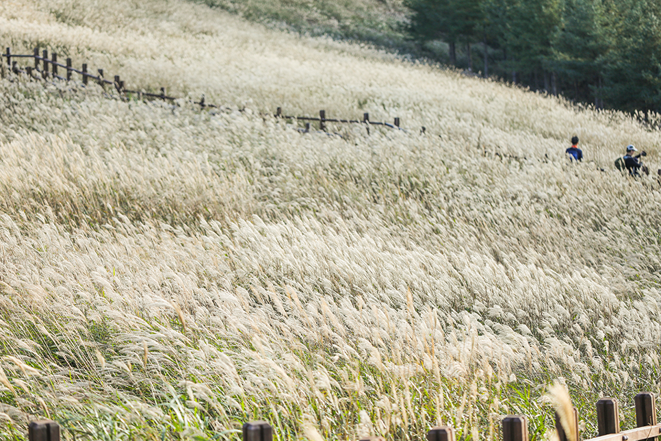 가파르지 않은 경사의 임도를 따라 한 시간 반 정도 오르면 억새 군락지까지 도착할 수 있어요.