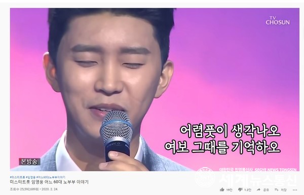 조회 수를 달성한 "바람"을 부르다. 개인적으로 정말 많은 감동이 있었고 나에게 트로트에 관심을 갖게 해 준 곡이다.