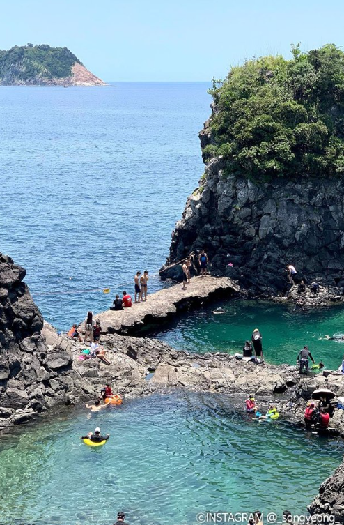 암석 아래쪽으로는 바닷물이 순환되어 맑은 물이 유지된다고 합니다.