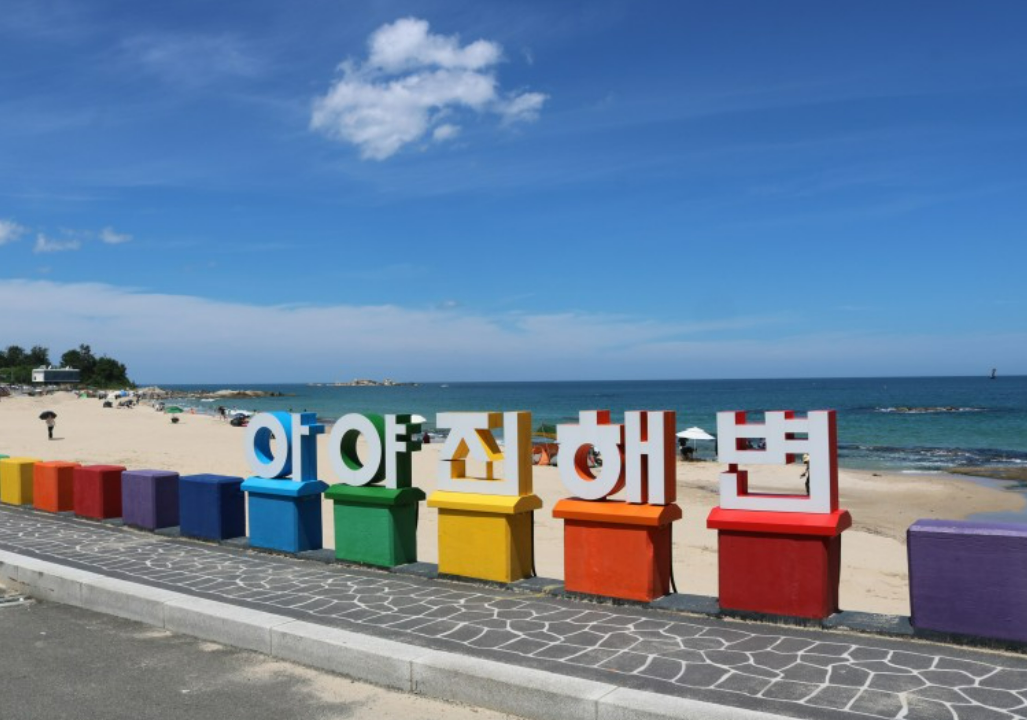이곳에서 아이들,가족들과 해수욕도 즐기시고 무지개색 포토존에서 이쁜 사진도 남기기 좋은 아야진 해변 추천합니다.