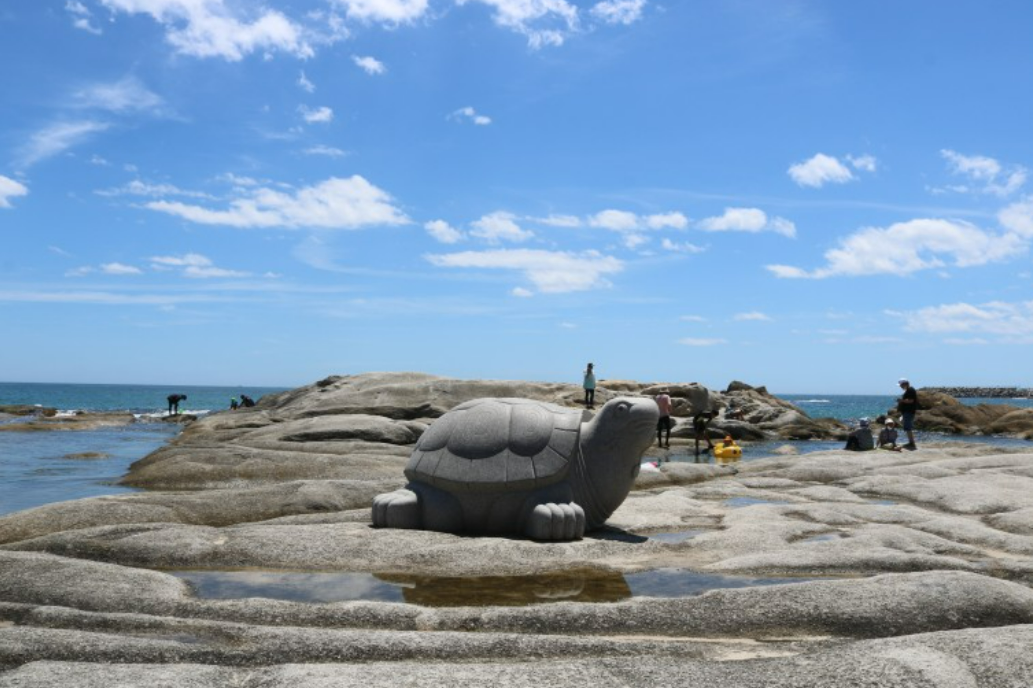 또한 이곳에는 오래전 고성 아야진에는 거북이 모양의 바위가 있었다고 합니다. 한때 구암리라고 부르던 시절도 있었는데 일제강점기 때 방파제 건설로 바위를 없앴지요. 이를 아쉬워하던 주민들의 마음을 담아 거북이 조형물 다시 만들었다고 합니다.
