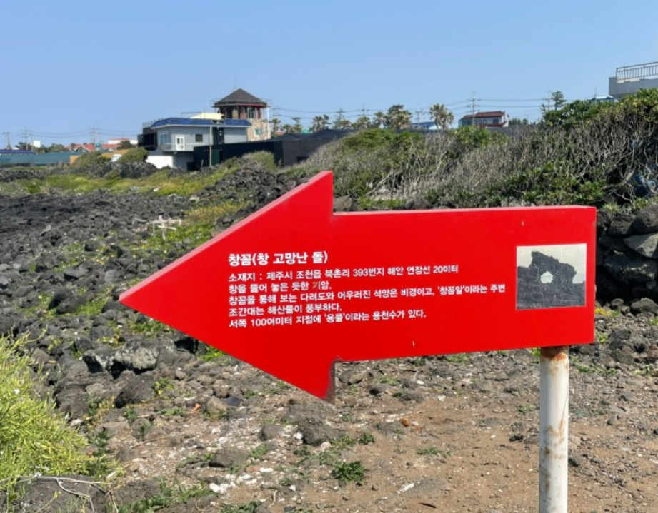 제주 창꼼바위는 창꼼 또는 창 고망난 돌이라고 불리는데 고망은 제주도 방언으로 구멍을 뜻한다고 합니다.
