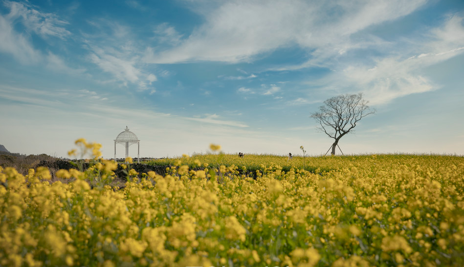 더욱이 꽃샘추위가 지나고 날씨가 본격적으로 온화해지는 4월 중순엔 '유채꽃'이 만발해 노란 유채꽃 물결이 장관을 이룬다.
