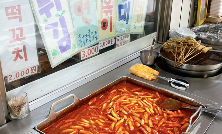 이곳은 물가 비싼 역삼동에서 3천원으로 떡볶이 1인분을, 2천원으로 떡꼬치를 무려 네 개나 먹을 수 있는 귀한 가게다. 떡볶이, 떡꼬치, 어묵, 라면, 순대, 튀김 등 분식집이라면 꼭 있어야 하는 핵심 메뉴들만 판매한다. 떡볶이는 비닐을 씌운 접시에 담겨 나오고, 떡꼬치는 주문과 동시에 튀기기 시작한다.
