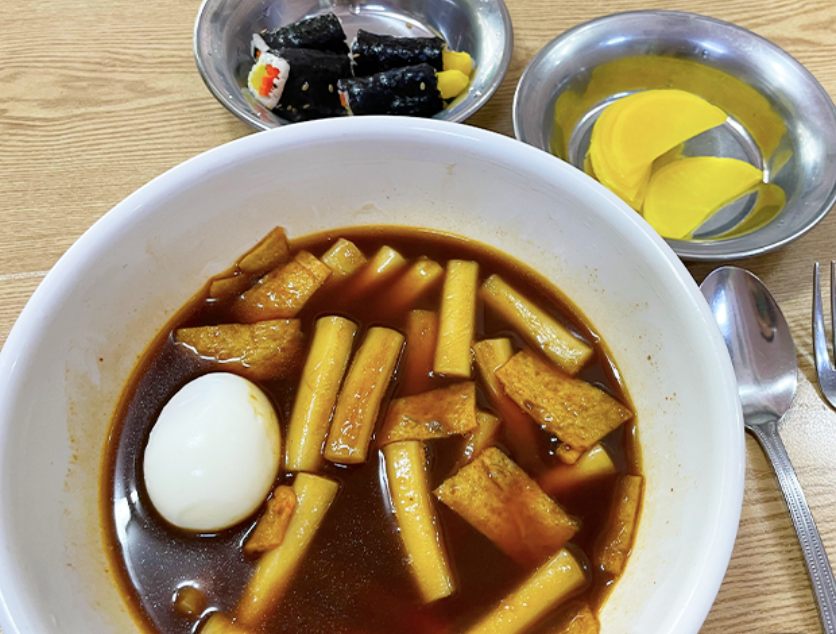대표 메뉴인 짜장 떡볶이를 주문했다. 이곳의 짜장 떡볶이는 비주얼과 맛 모두 독특하다. 우선 국물이 많다. 국물은 꾸덕하지 않고 매우 묽다. 양념이 잘 배어든 밀떡과 얇은 어묵을 국물과 함께 숟가락으로 후루룩 떠먹으면, 어라? 다른 곳의 짜장 떡볶이와는 달리 상당히 매콤하다. 은근한 짜장 맛에 빨간 떡볶이의 매콤함이 가미된 듯한 맛이다. 콧물을 훔칠 정도로 맵기 때문에, 삶은 계란이나 만두, 김밥을 추가하는 걸 추천한다. 한 스푼, 두 스푼 먹다 보면, 맘만 먹으면 하굣길에 언제든지 이 떡볶이를 사 먹을 수 있는 면동초등학교 어린이들이 부러워진다.