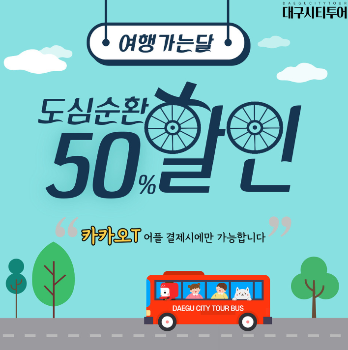 또한 6월 한 달 동안 카카오T 앱을 통해 대구시티투어를 예약 및 결제하면 할인 폭을 더 확대돼 50% 나 된다.