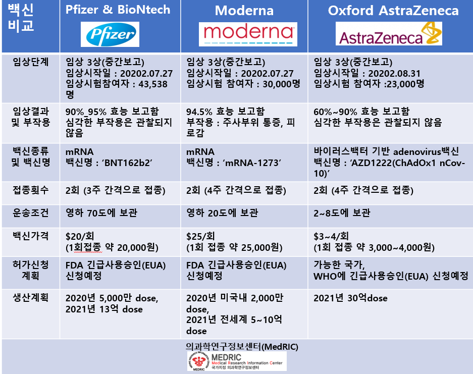 내가 맞을 백신이 화이자 인가 모더나인가에 대해서 매우 궁금함이 커지고 있다.
